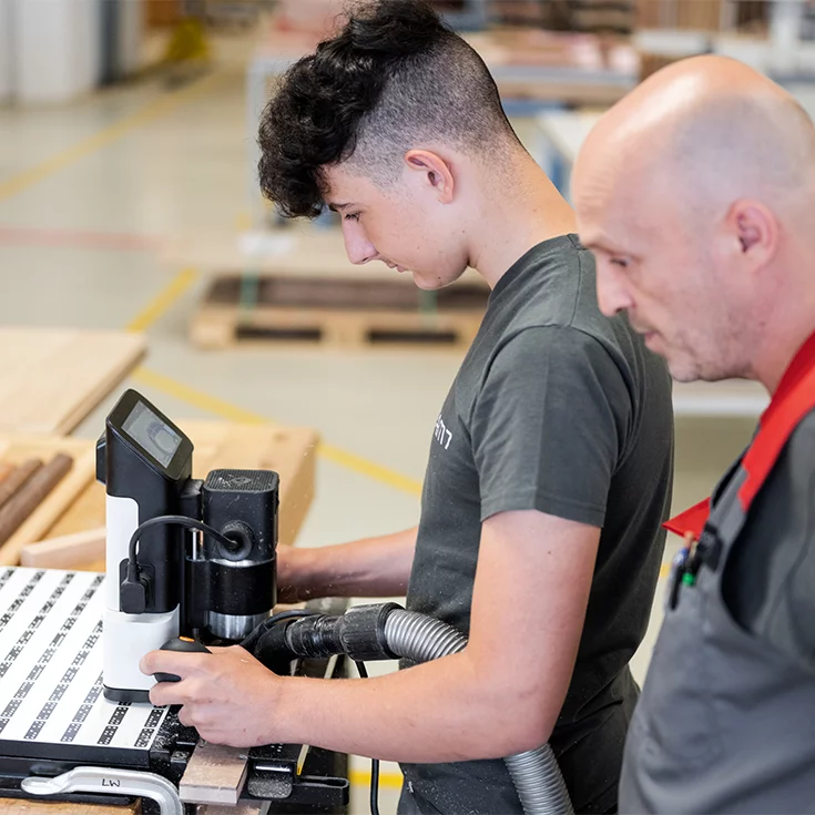 Im Rahmen der Dualen Akademie haben Maturant:innen, Studierende oder Menschen, die sich beruflich neu orientieren wollen, bei TEAM 7 die Möglichkeit, den Beruf Tischlereitechniker:in in einer verkürzten Ausbildungsdauer von 3 Jahren zu erlernen.
