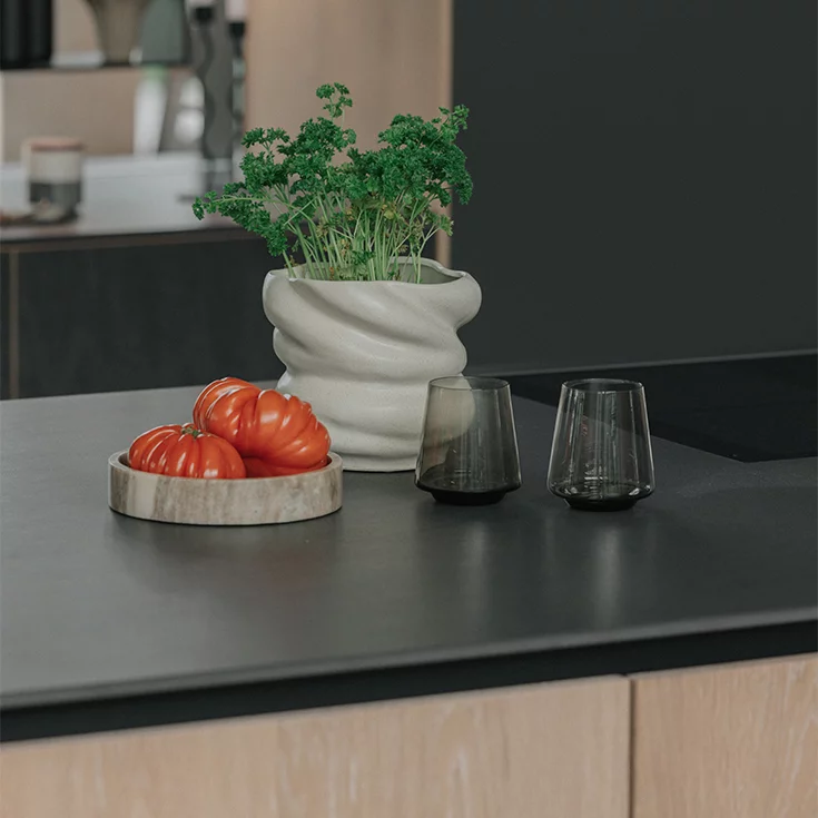 Ceramic is made from natural mineral materials and has an extremely durable surface. It has a high level of scratch and heat resistance, is impermeable to water, and is also impervious to liquids and practically all household chemicals. Ceramic surfaces can be cleaned simply and efficiently with standard commercial cleaning agents. Metallic sponges and abrasive cleaners are not suitable, as they can cause differences in the product's lustre after cleaning. You can find detailed information about ceramic care along with the appropriate cleaning and care products in our online product care shop.